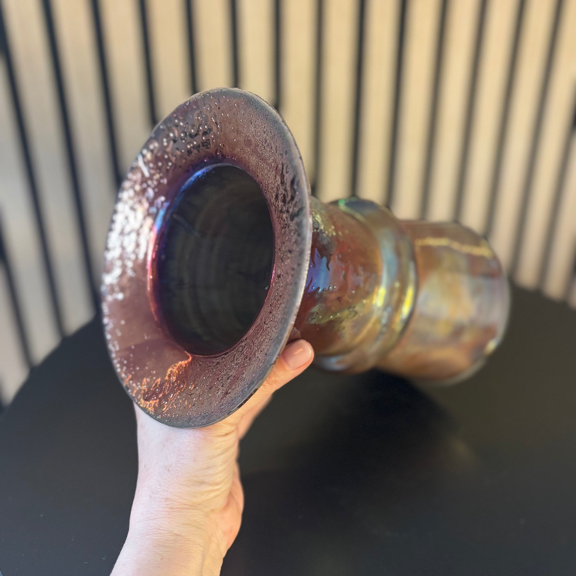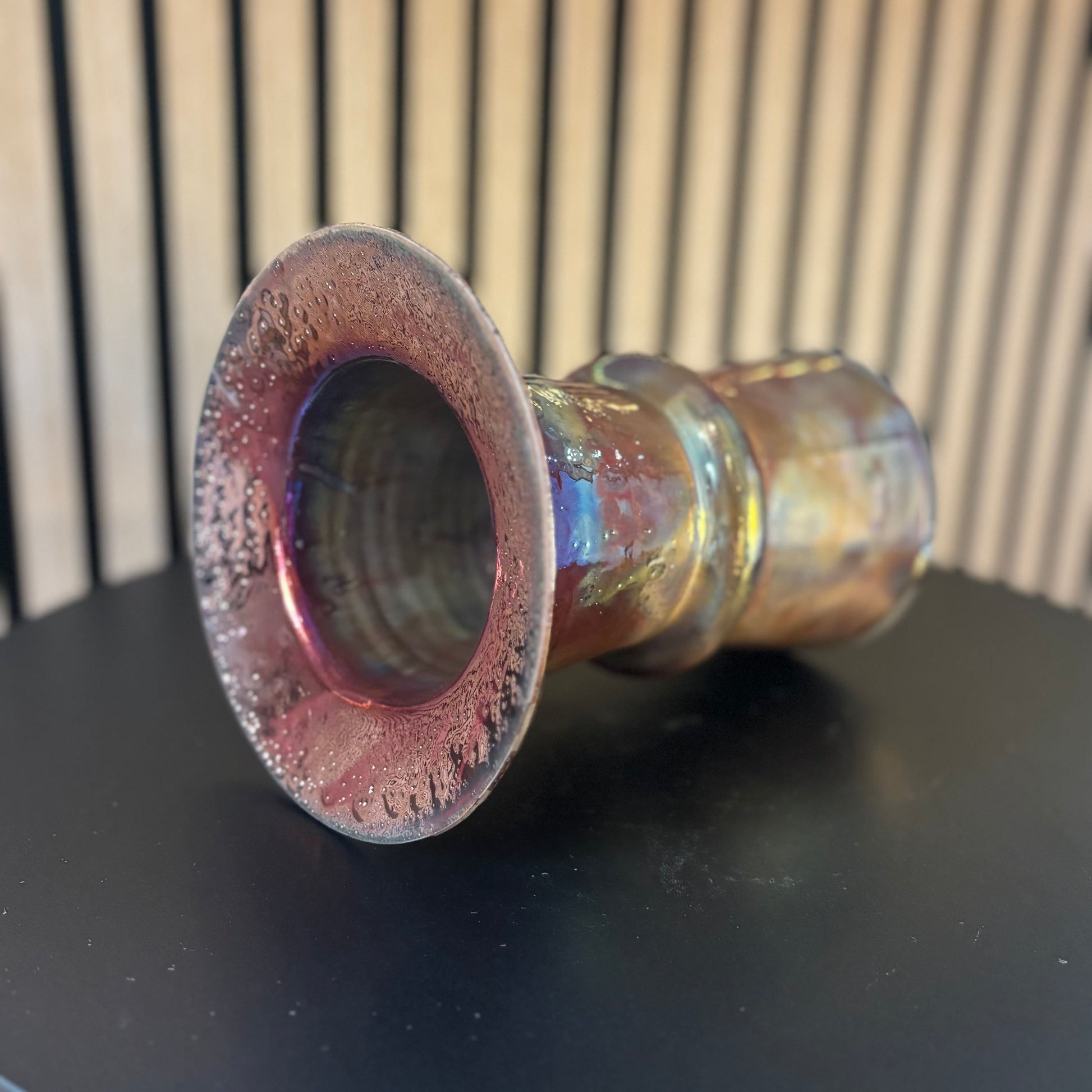Decorative porcelain, raku-fired, iridescent vessel. Dry flowers only.