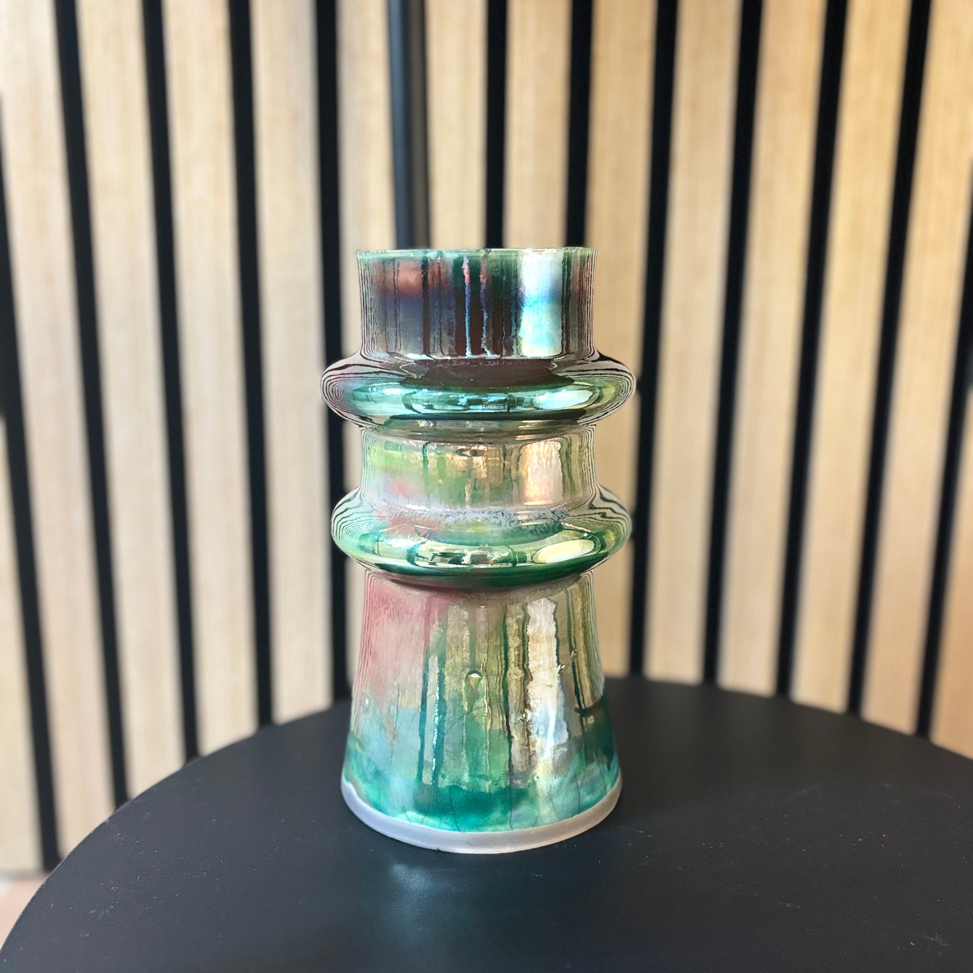 Decorative porcelain, raku-fired, iridescent vase. Dry flowers only.