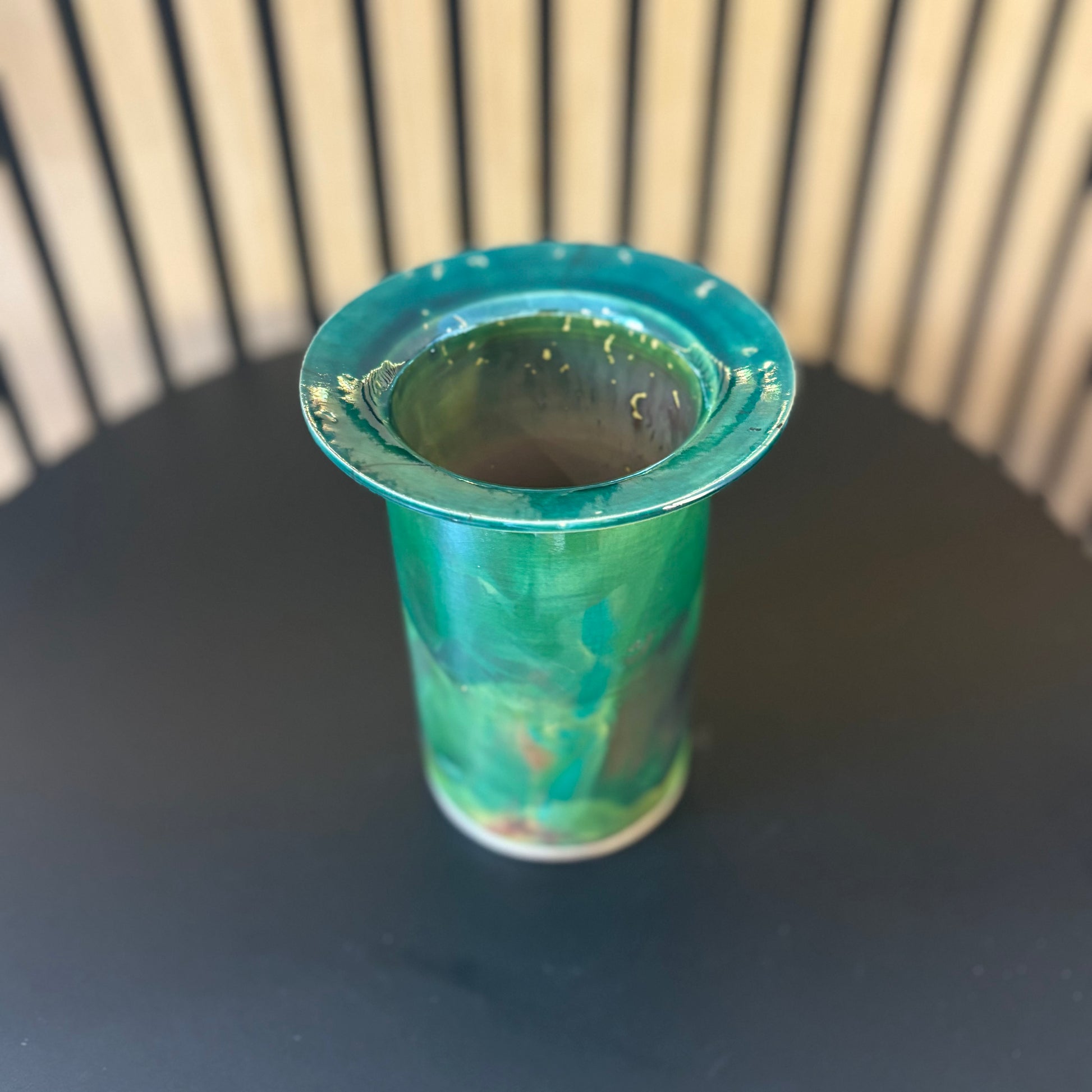 Decorative porcelain, raku-fired, iridescent vase. Dry flowers only.