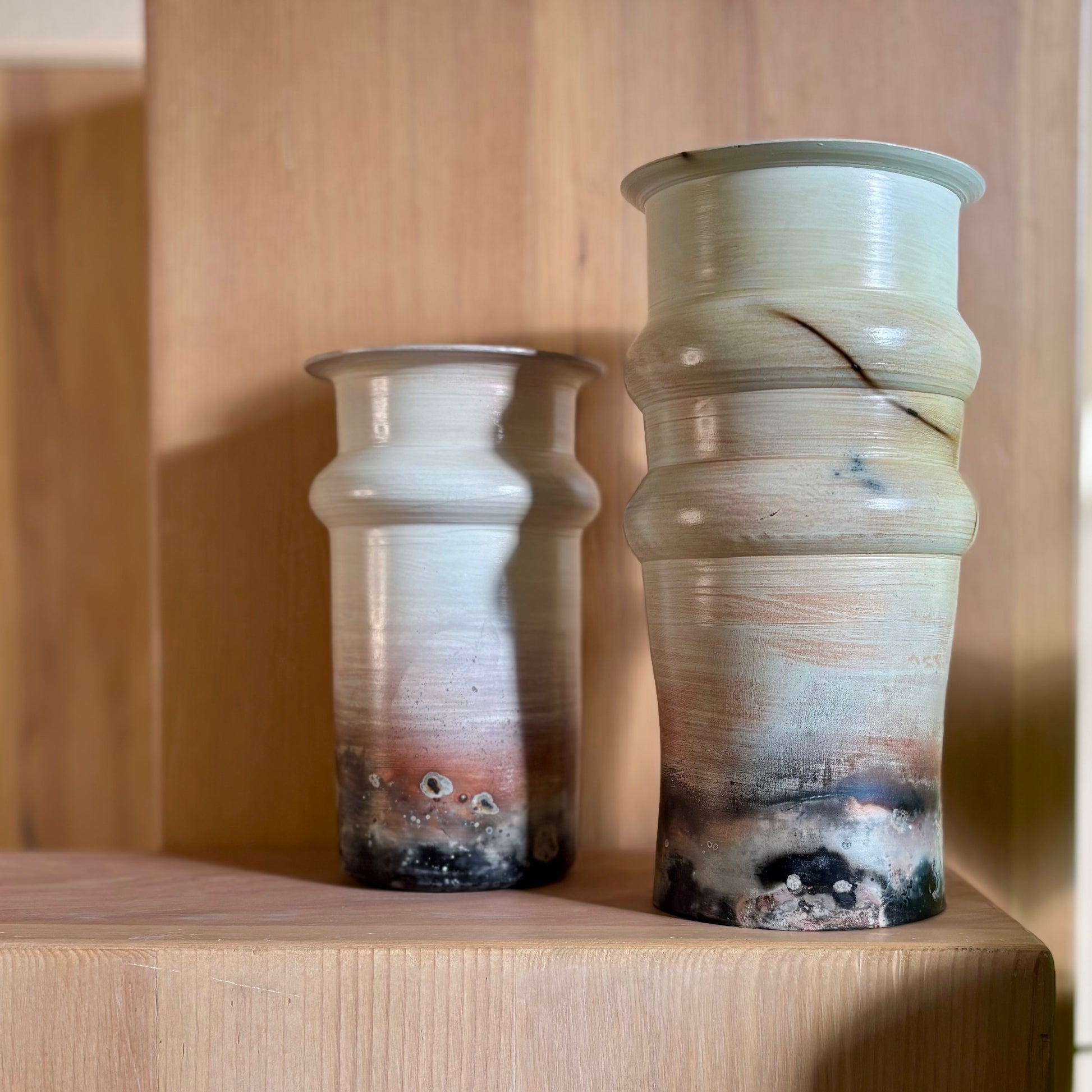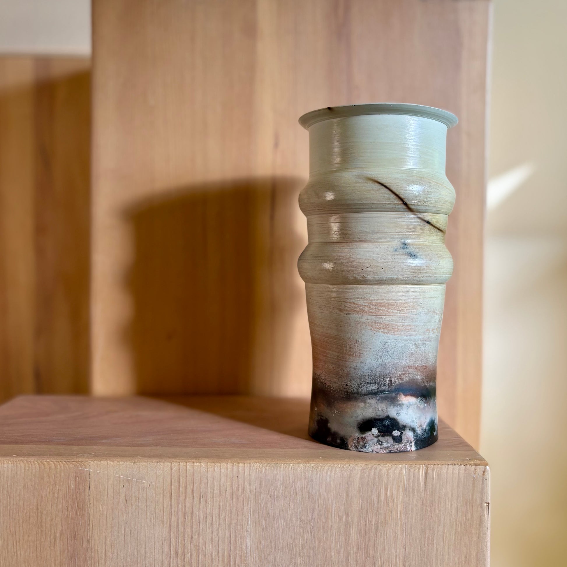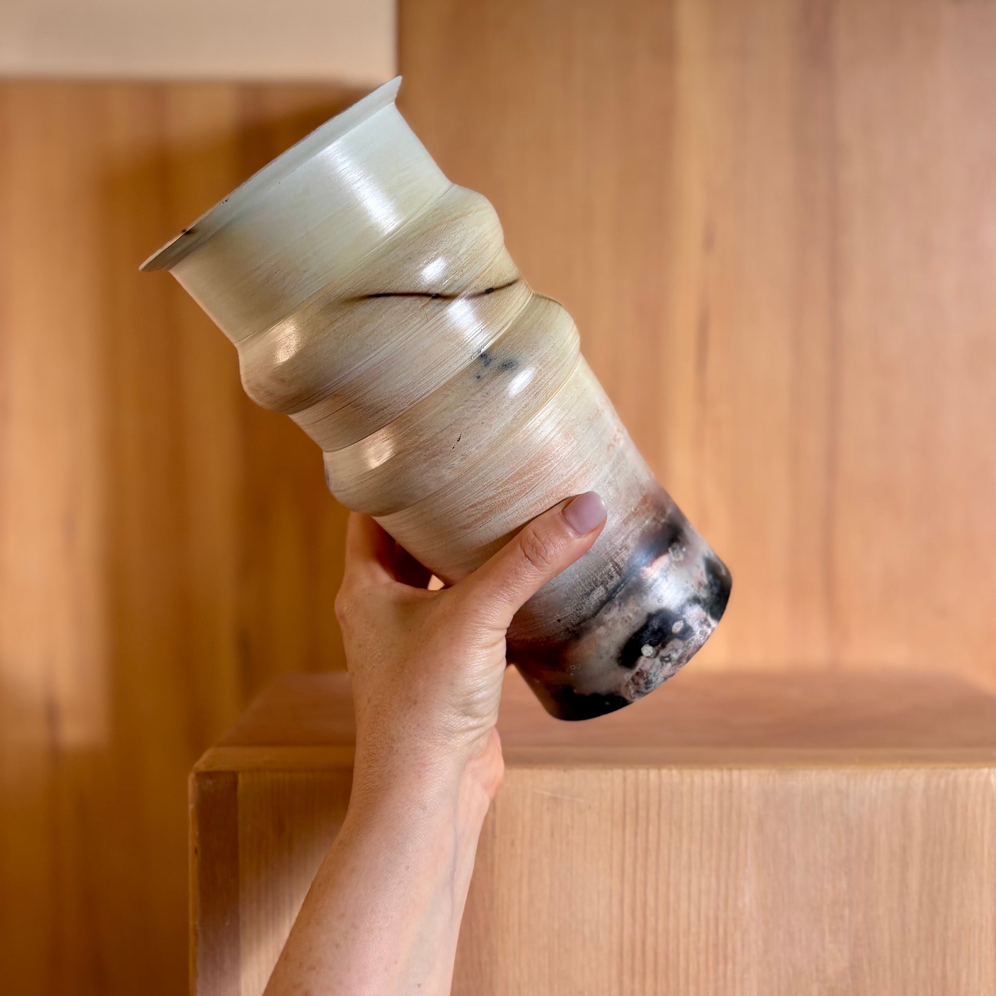 Decorative porcelain, saggar-fired vase. Dry flowers only.