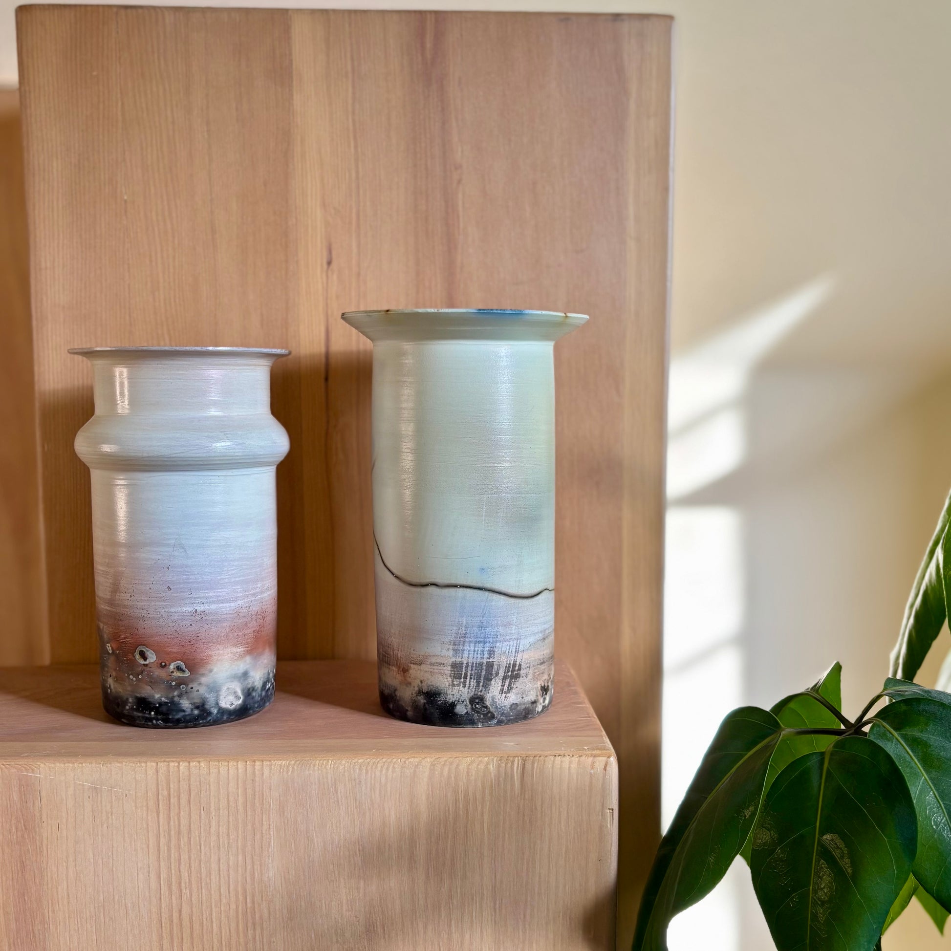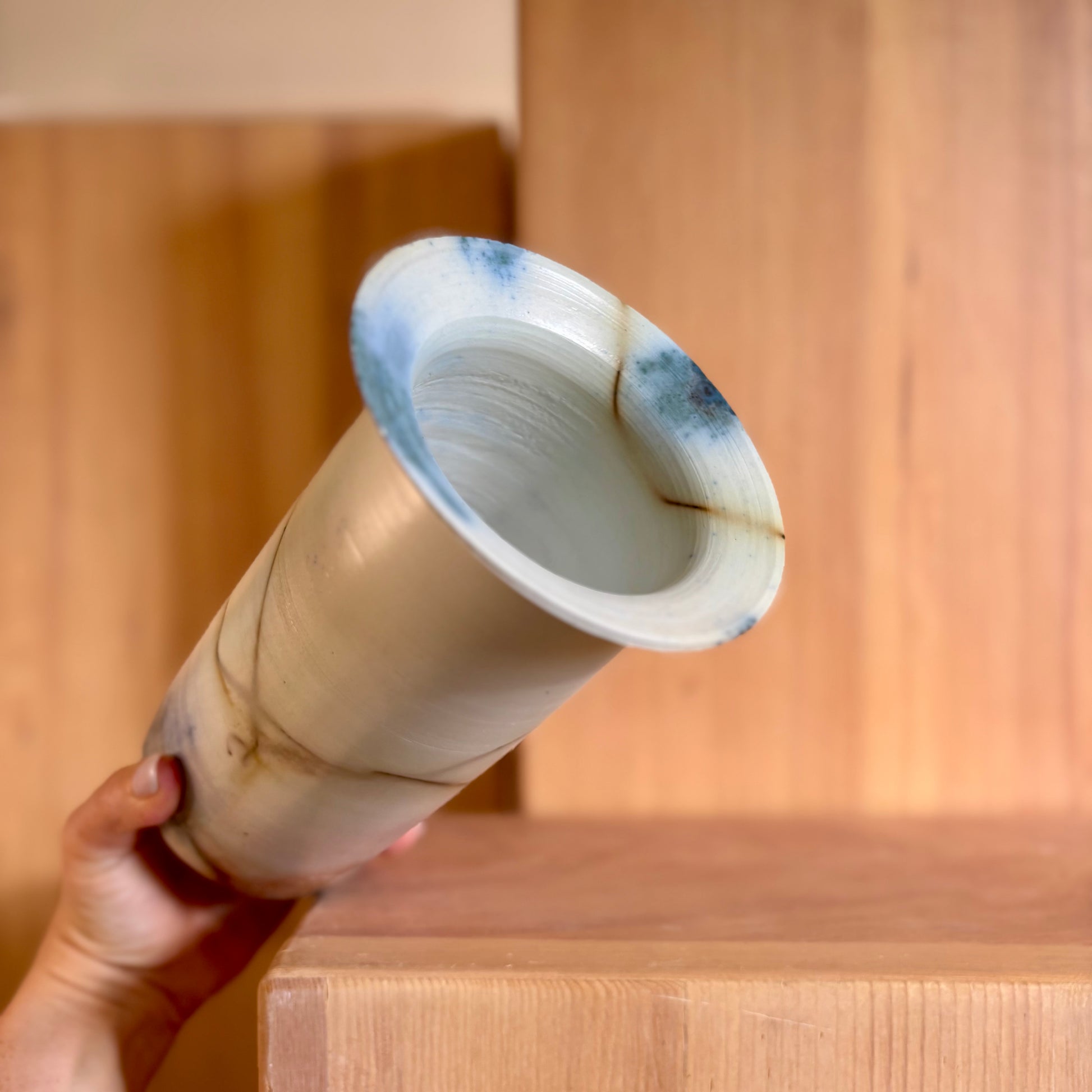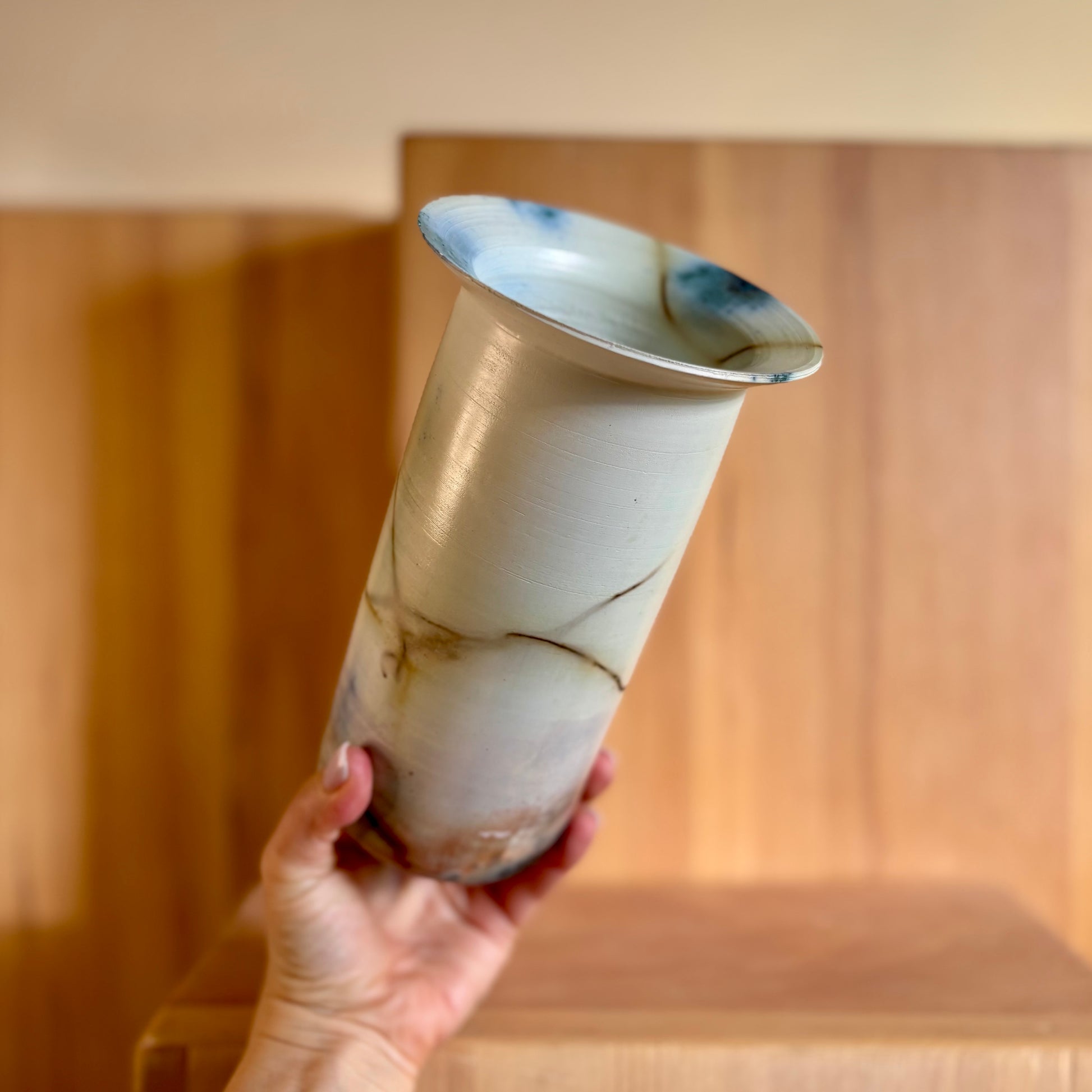 Decorative porcelain, saggar-fired vase. Wide rim. Dry flowers only.